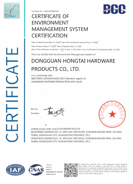 東莞市紅泰五金制品有限公司,公司占地六千多平方米,擁有五十多組螺絲機(jī)及六十臺自動車床設(shè)備。是一家專業(yè)設(shè)計(jì)、生產(chǎn)ISO、DIN、GB、JIS、ANSI、BS及客戶指定特殊要求的高精密五金緊固件的制造企業(yè)。